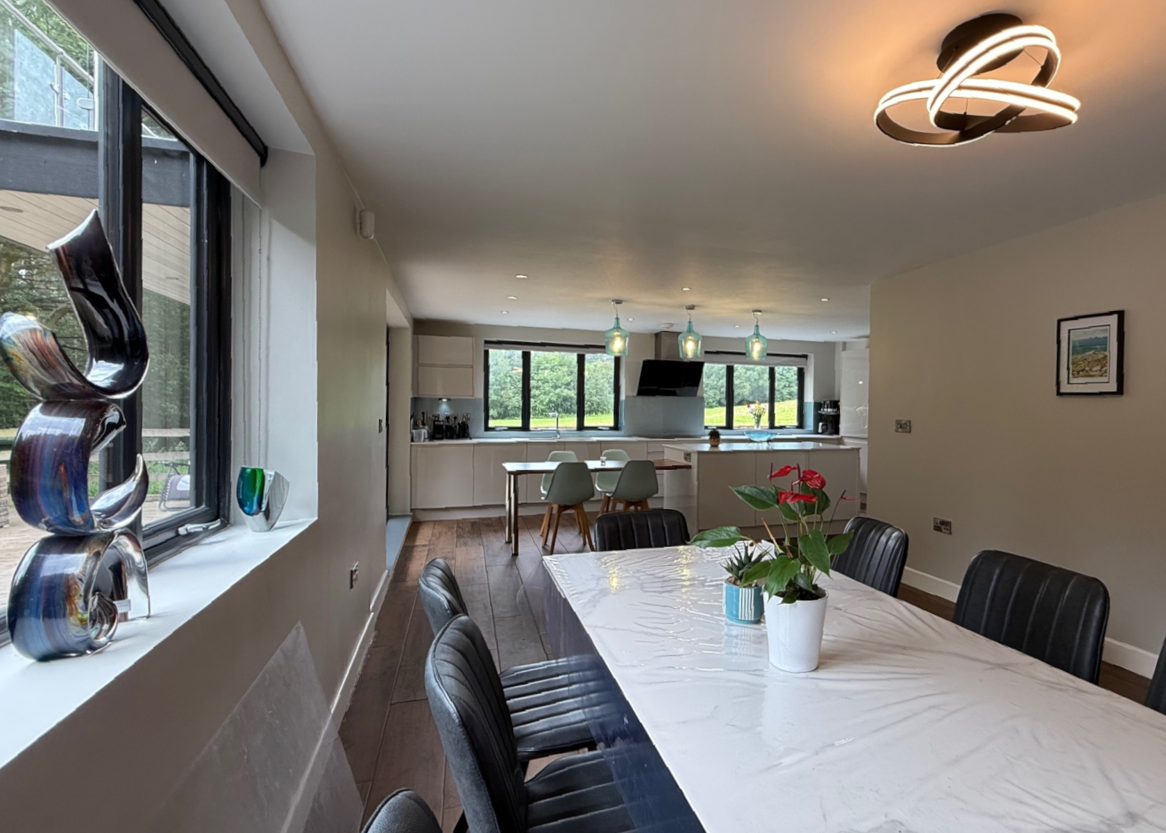 A second open-plan kitchen/living space, also with bifold doors and a full-width skylight, offers additional flexibility and further enhances the airy, light-filled feel of the property. Whether you're hosting guests, enjoying a quiet evening, or simply taking in the tranquil views, every corner of this home speaks to comfort, style, and space.