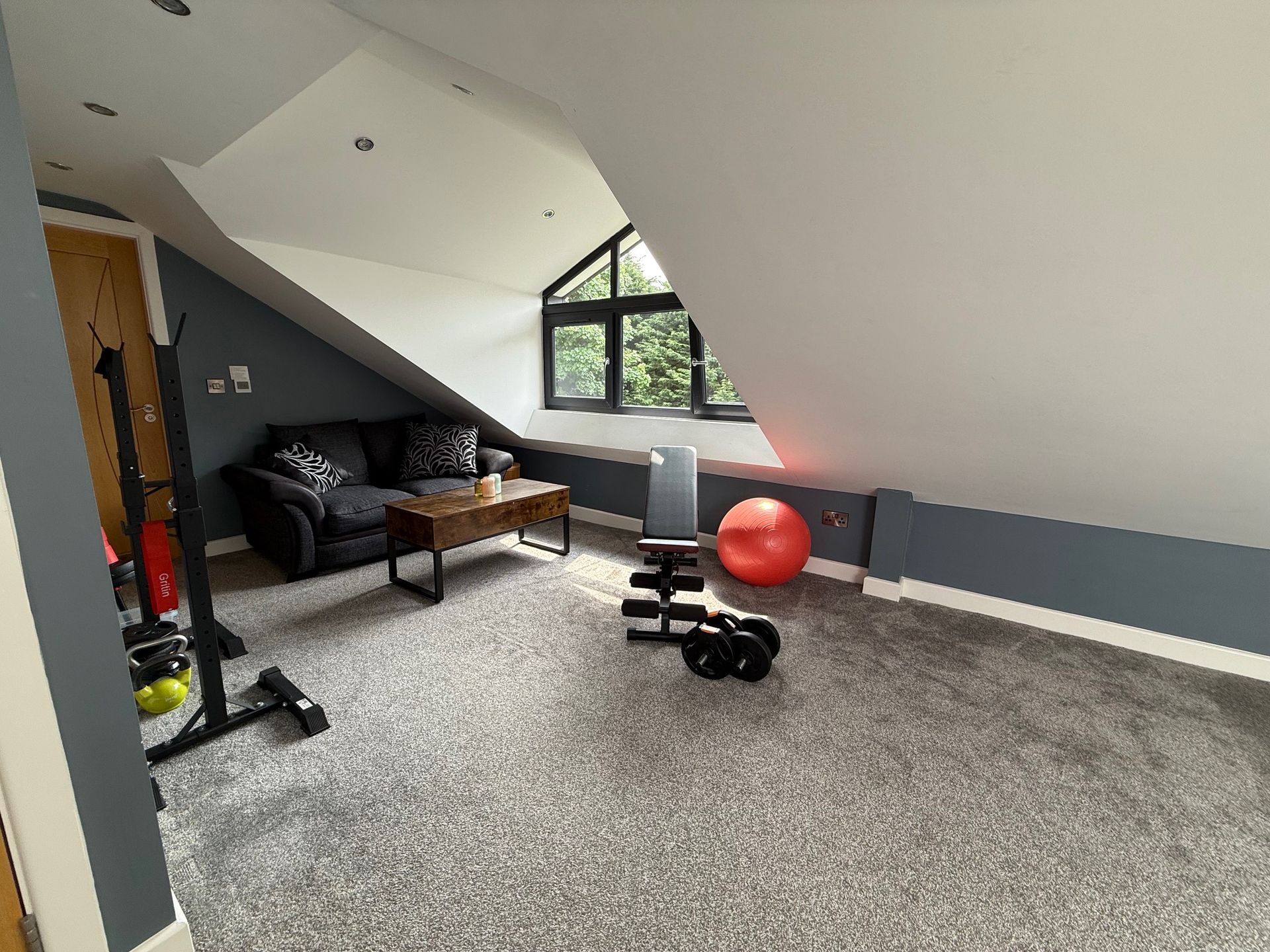 The spacious loft room, complete with apex feature window and en-suite, provides further flexibility—ideal as a guest suite, home office, or teenage retreat.