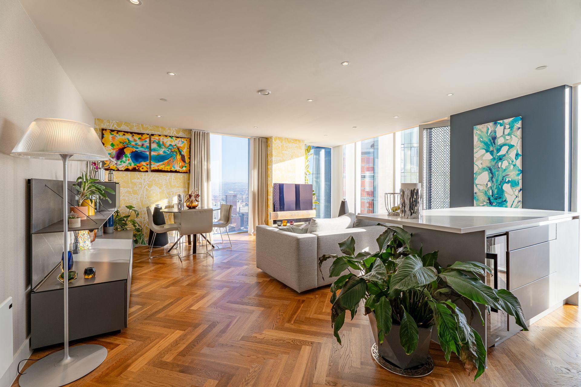 A luxurious two bedrooms corner apartment situated on the 49th floor of South Tower, the tallest tower in Manchester, the tallest residential skyscraper outside London.