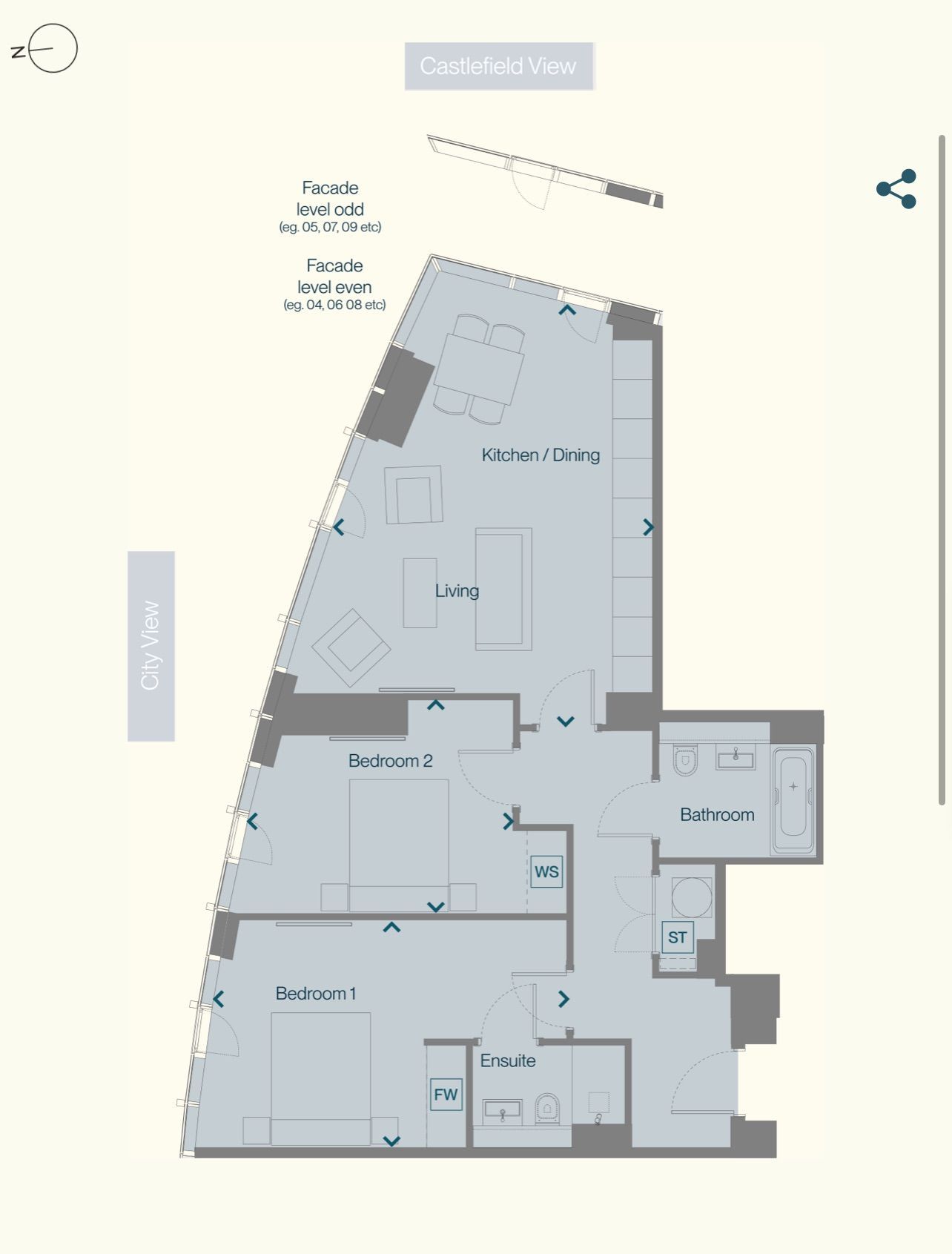 These two-bedroom, two-bathroom apartments feature spacious double bedrooms, thoughtfully designed to create a private retreat with generous storage. The master suite includes a luxurious en-suite bathroom, while the main bathroom reflects the development’s commitment to high-quality finishes and contemporary style.