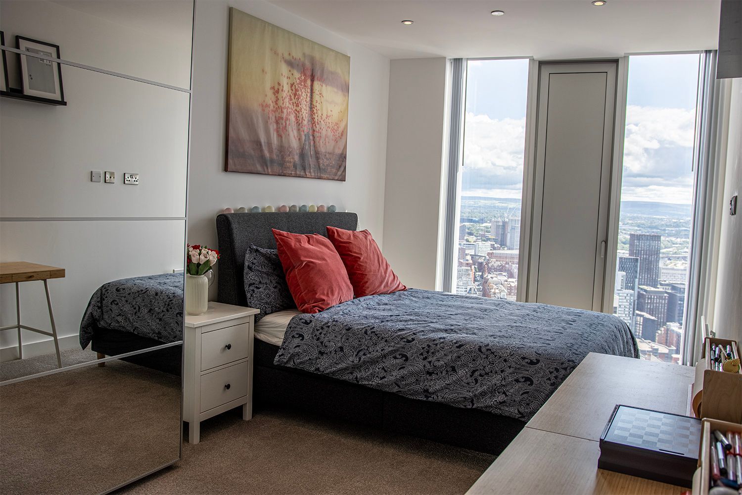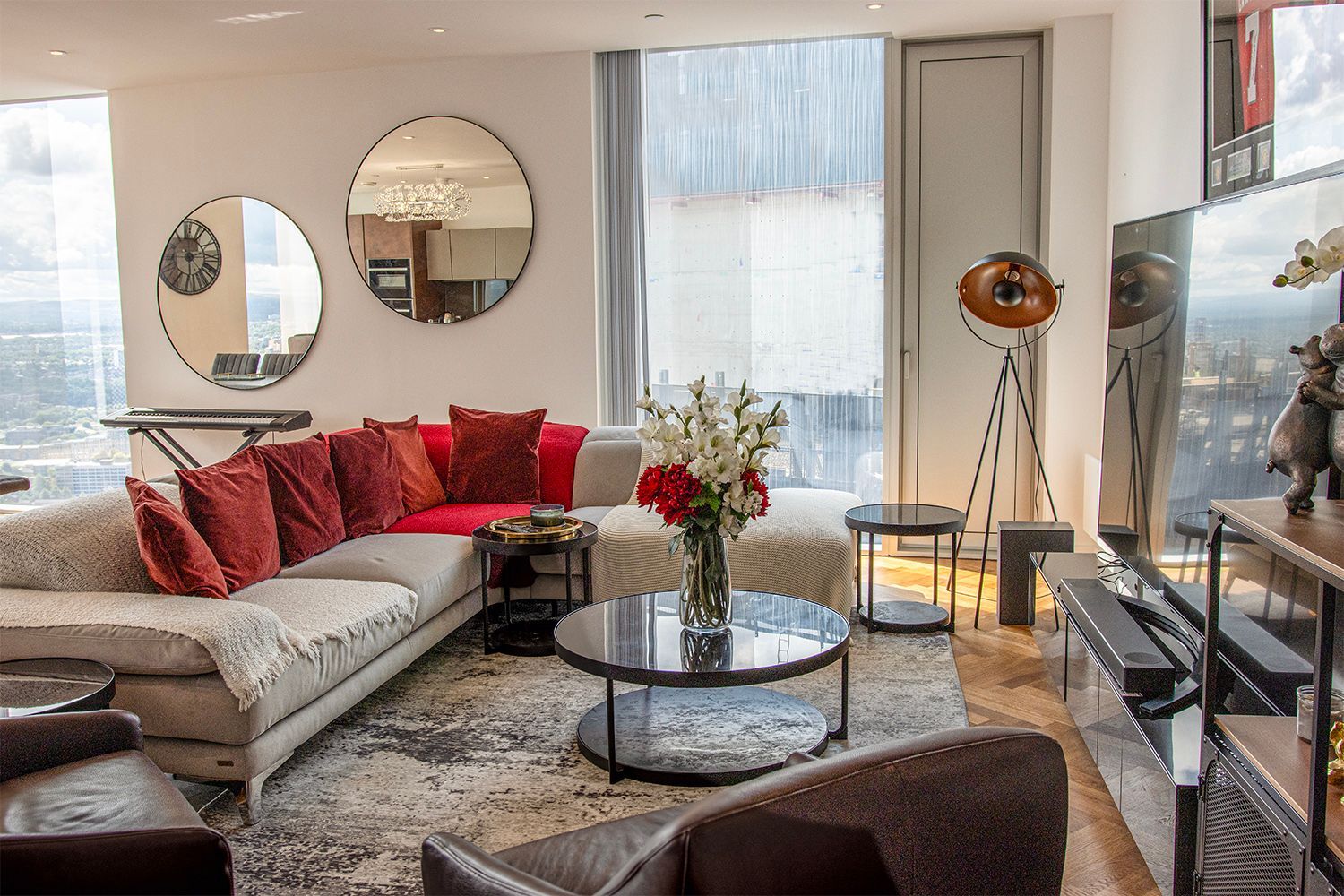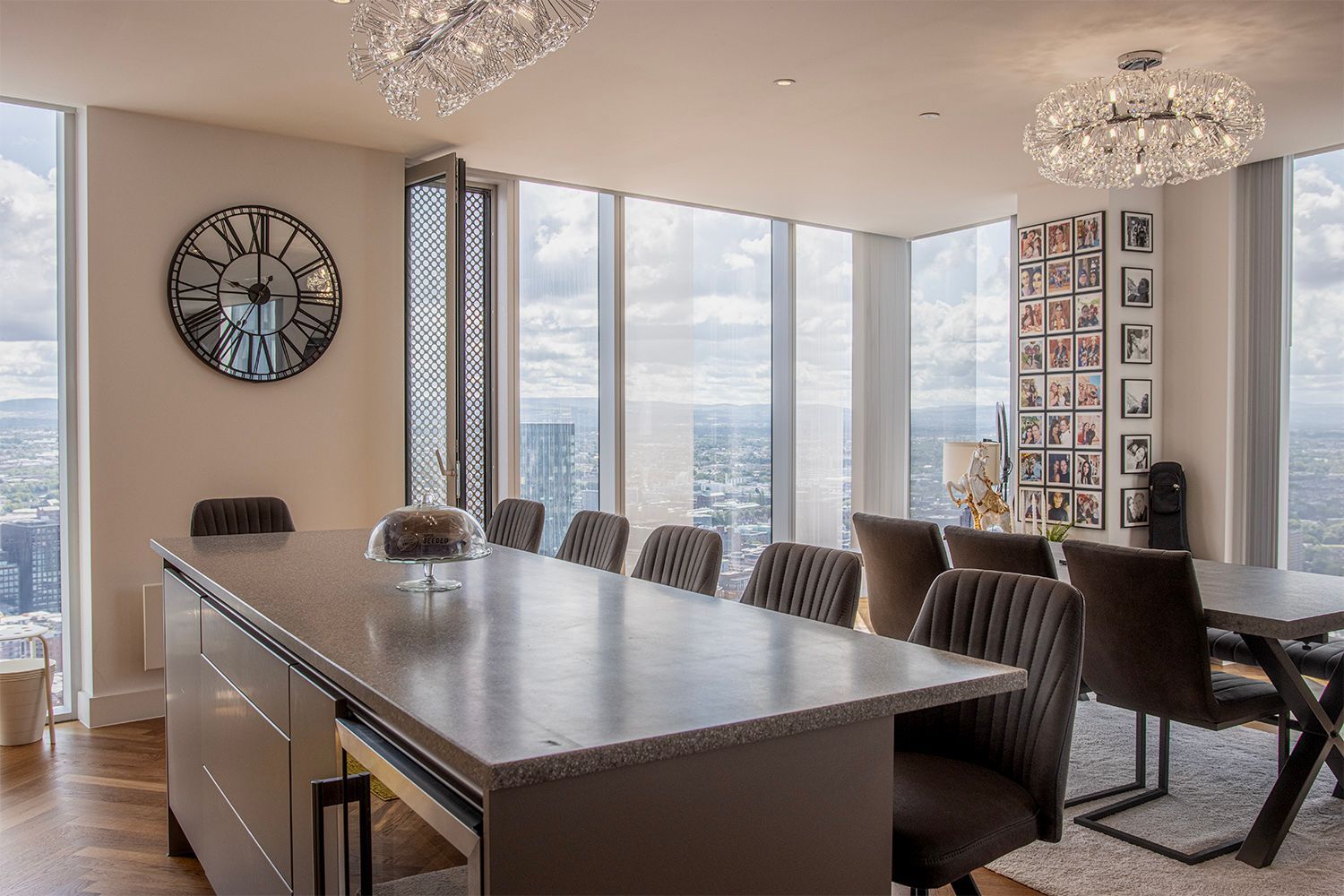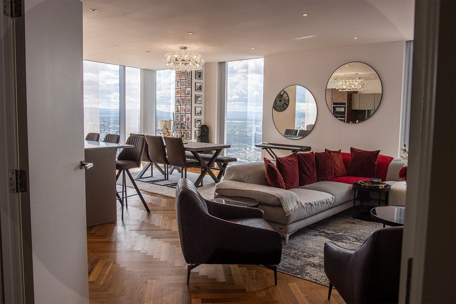 A very spacious living space with breathtaking views of the city of Manchester and beyond.
