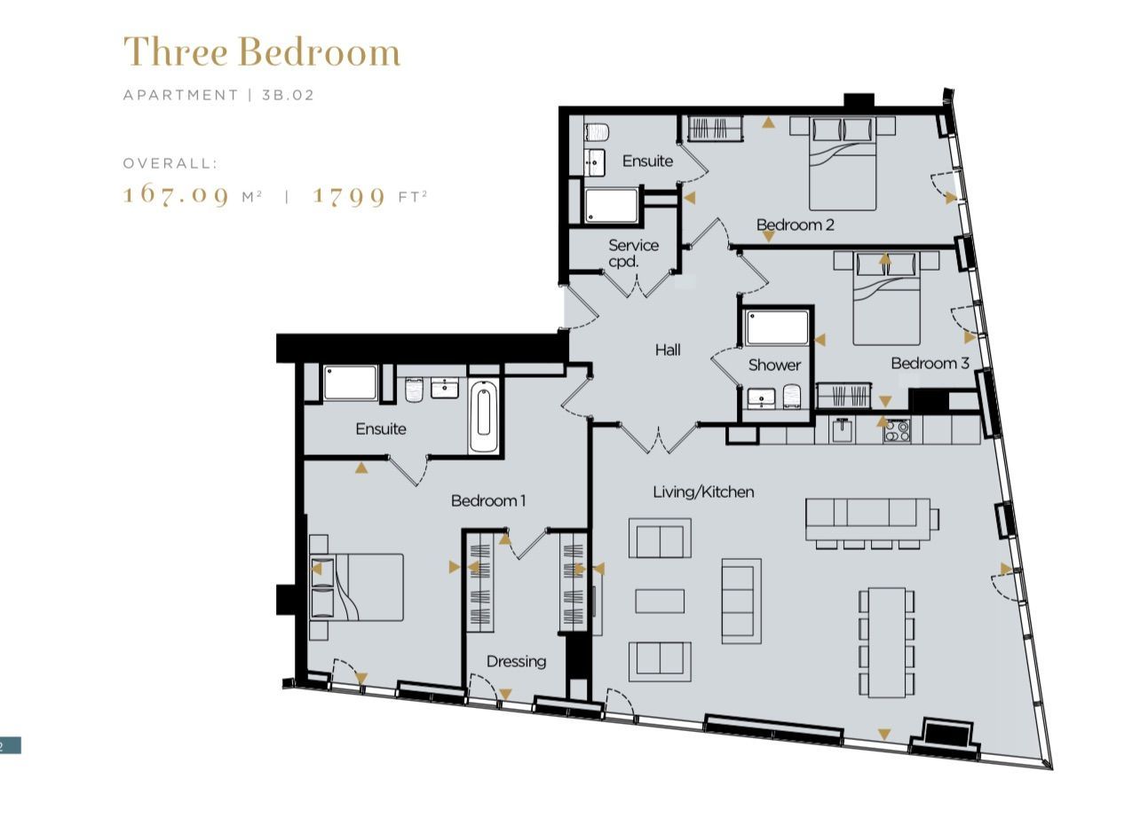 Rialto is proud to present this beautiful, stylish, modern, high specification three-bedroom corner apartment located on the 48th floor of Manchester's most iconic development, Deansgate Square.