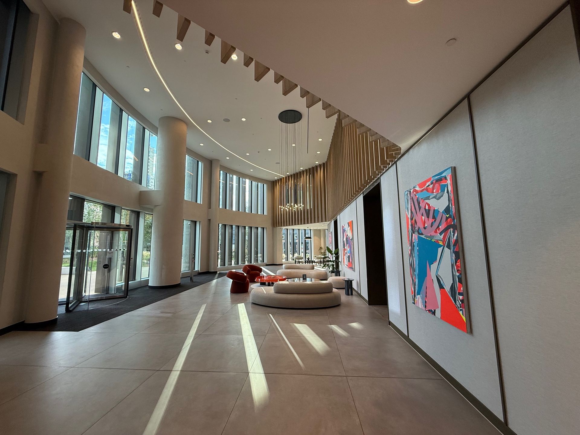 Floor-to-ceiling windows, filling the space with natural light